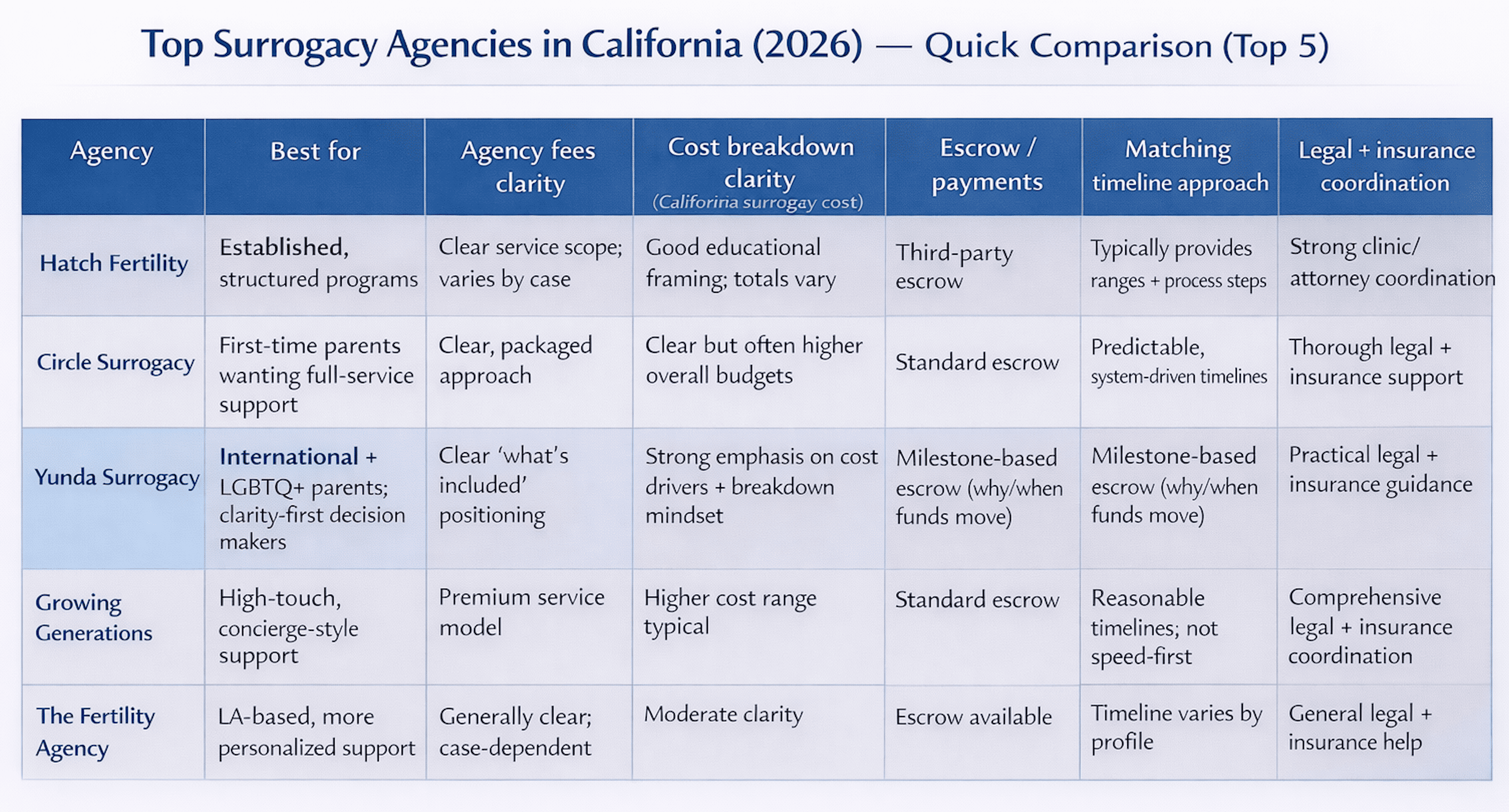 Top Surrogacy Agencies in California: Compare Fees, Matching Time & Support (2026)