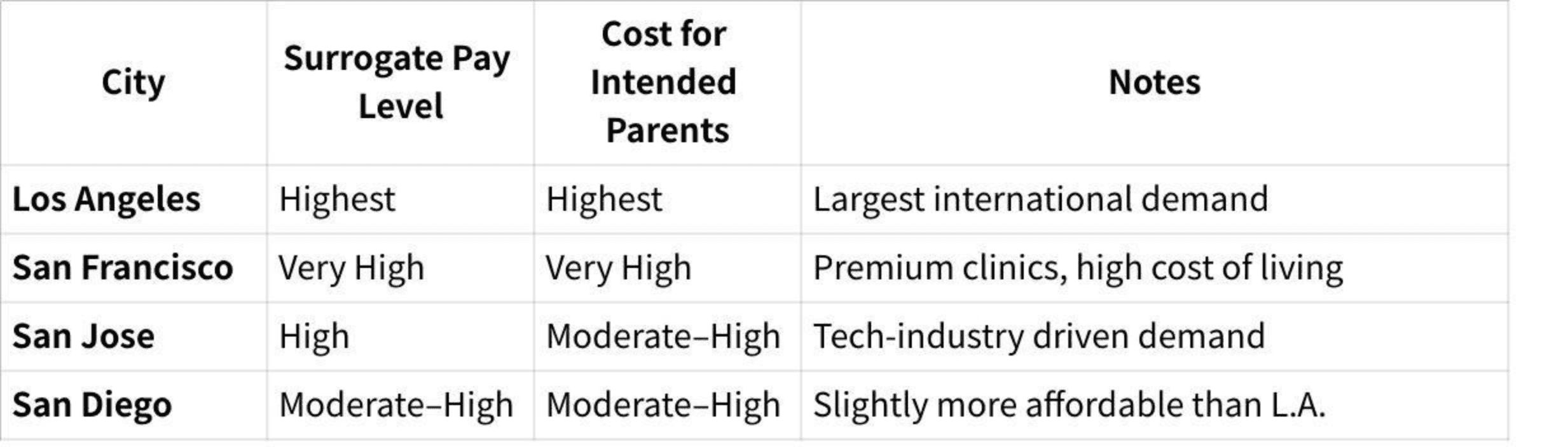 San Diego is another surrogacy hub with slightly different cost dynamics.